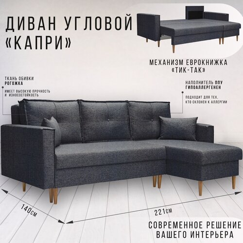 Диван кровать угловой Капри 28 (Рогожка) 221х140х95