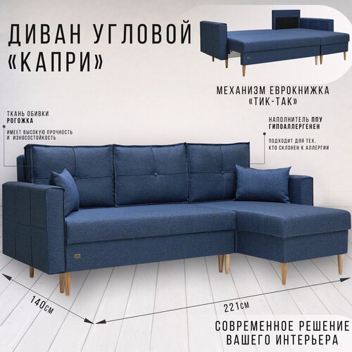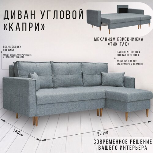 Диван кровать угловой Капри 41 (Рогожка) 221х140х95
