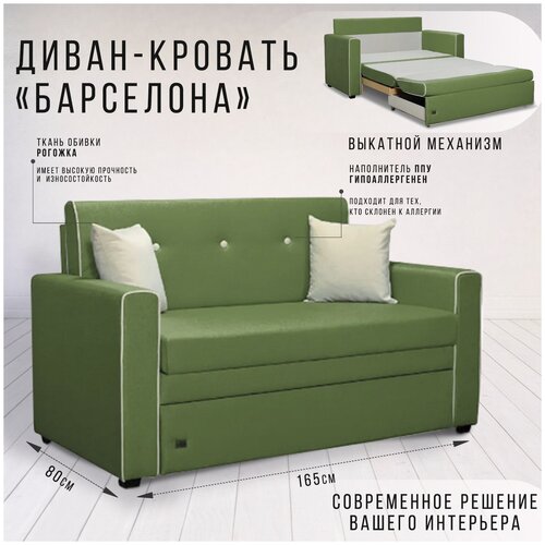 Диван прямой / Диван - кровать, выкатной с гнутоклееными латами / Барселона 140 (Tesla Forest) 165х80х86 см