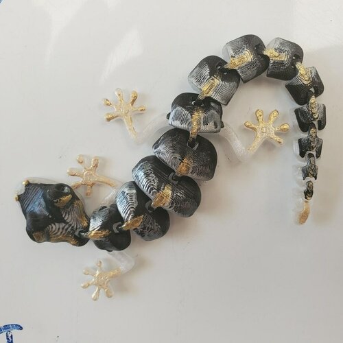 Ящерица геккон гибкая, магнитная, сегментная игрушка-антистресс, белый низ, черный верх, золотая покраска