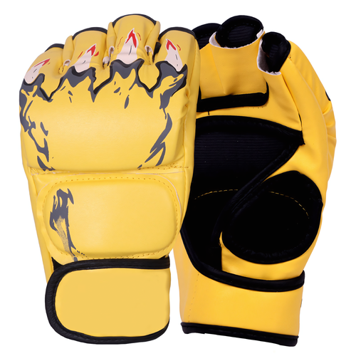 Перчатки тренировочные для ММА, тхэквондо, из полиуретана, с открытой зоной пальцев, воздухопроницаемые, желтые