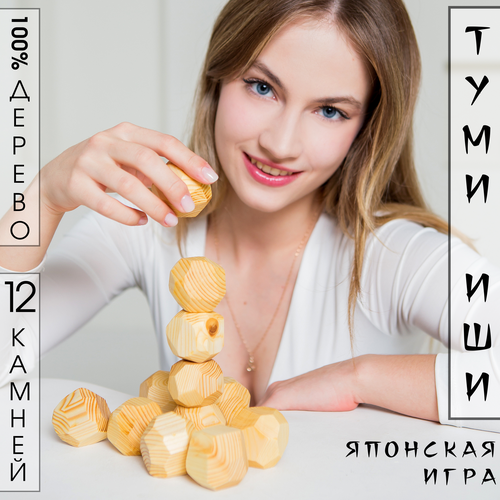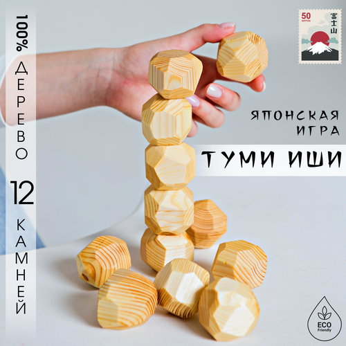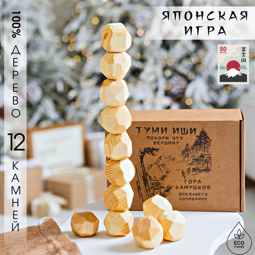 Настольная игра для взрослых и детей - Туми Иши Гора деревянных камней - 12 шт. с мешочком