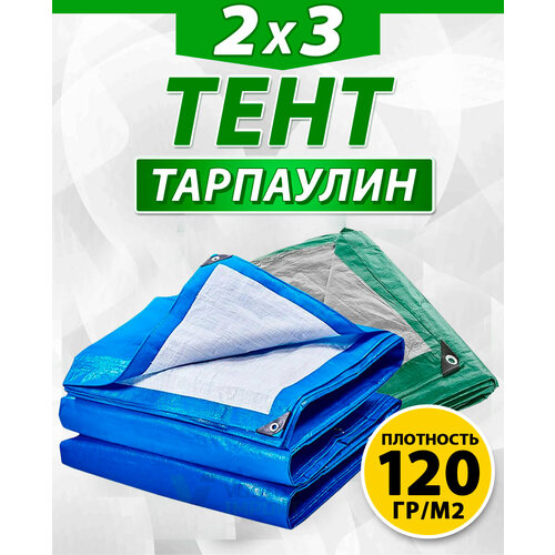 Тент Тарпаулин 120гр/м², 4х6 зеленый/серый