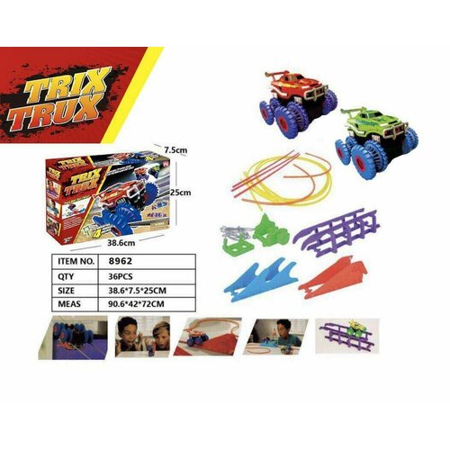 Гоночные машинки Монстр-Трак Trix Truk с трассой 2 машинки, трамплин волна тросс брусья в кор. 38.6х7.5х25см.