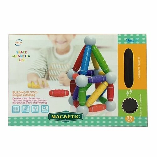 Конструктор Магнетик блок для малышей 32 дет. 36х27.5х10см