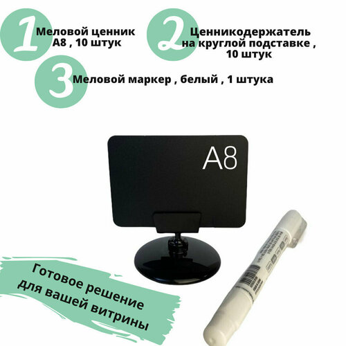 Набор ценникодержатель , меловой черный ценник и маркер. Комплект из 10шт и 1 маркера / меловые таблички ценники / держатели ценников пластиковые