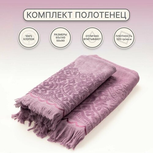 Набор махровых полотенец Parisa Home Esteri для ванной, банное, для лица и рук, Жаккардовый 100%-й хлопок, 50х90 и 65х140 см, сиреневое, 2шт