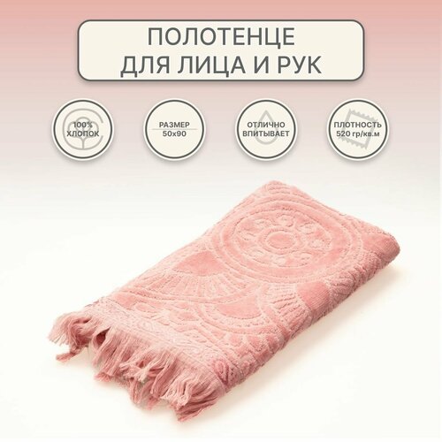 Полотенце махровое для лица и рук Parisa Home Esteri, Жаккардовый 100%-й хлопок, 50х90 см, розовое, 1 шт
