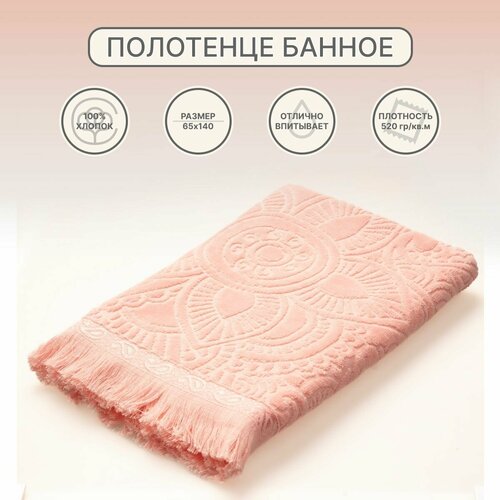 Полотенце махровое банное, для ванной, для тела Parisa Home Esteri, Жаккардовый 100%-й хлопок, 65х140см, светло-розовое, 1 шт