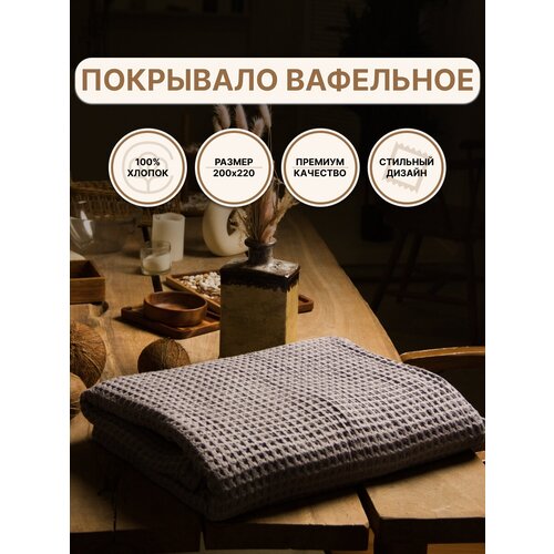 Плед покрывало вафельное Parisa Home, 100%-й хлопок, 200х220см евростандарт, цвет: дымчато-голубой
