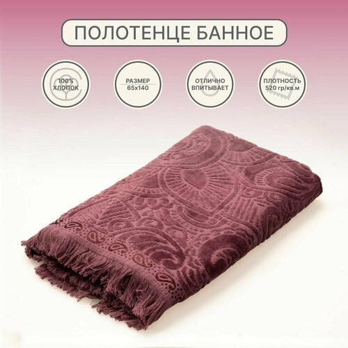 Полотенце махровое банное, для ванной, для тела Parisa Home Esteri, Жаккардовый 100%-й хлопок, 65х140см, фиолетовое, 1 шт