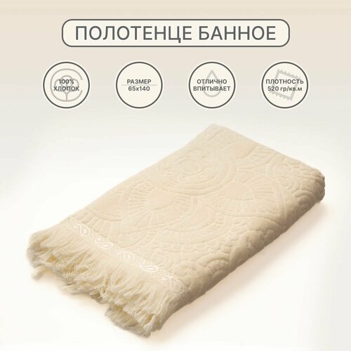 Полотенце махровое банное, для ванной, для тела Parisa Home Esteri, Жаккардовый 100%-й хлопок, 65х140см, кремовое, 1 шт