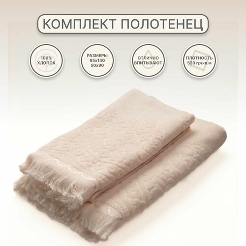 Набор махровых полотенец Parisa Home Esteri для ванной, банное, для лица и рук, Жаккардовый 100%-й хлопок, 50х90 и 65х140 см, кремовое, 2шт