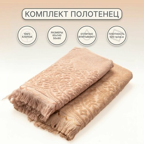 Набор махровых полотенец Parisa Home Esteri для ванной, банное, для лица и рук, Жаккардовый 100%-й хлопок, 50х90 и 65х140 см, светло-коричневое, 2шт