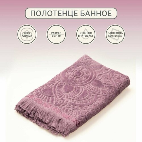 Полотенце махровое банное, для ванной, для тела Parisa Home Esteri, Жаккардовый 100%-й хлопок, 65х140см, сиреневое, 1 шт