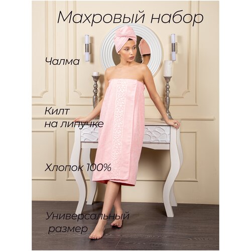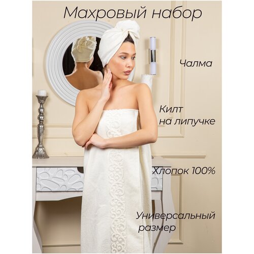Набор женский для бани и сауны махровый, Килт на липучке и Чалма