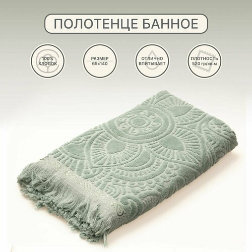 Полотенце махровое банное, для ванной, для тела Parisa Home Esteri, Жаккардовый 100%-й хлопок, 65х140см, зеленое, 1 шт