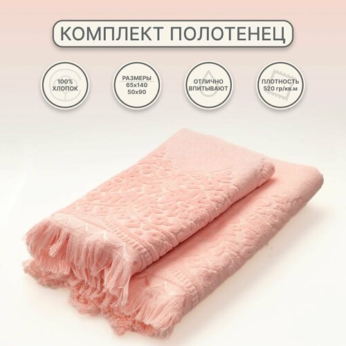 Набор махровых полотенец Parisa Home Esteri для ванной, банное, для лица и рук, Жаккардовый 100%-й хлопок, 50х90 и 65х140 см, светло-розовое, 2шт