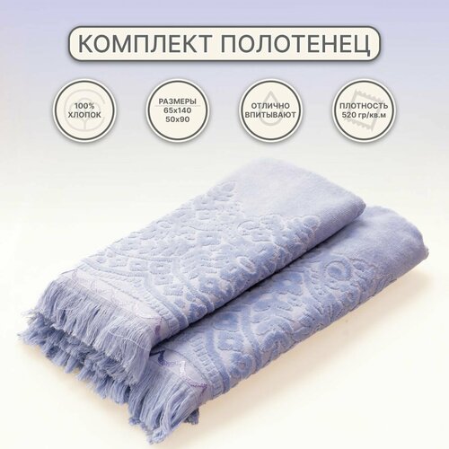 Набор махровых полотенец Parisa Home для ванной, для лица и рук, 100%-й хлопок, 50х90 и 65х135 см, пастельно-лиловый, 2шт