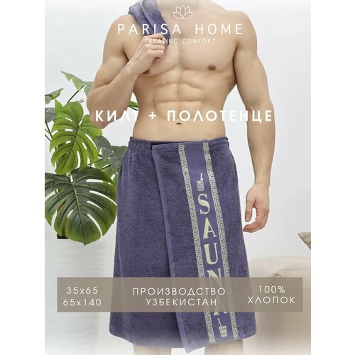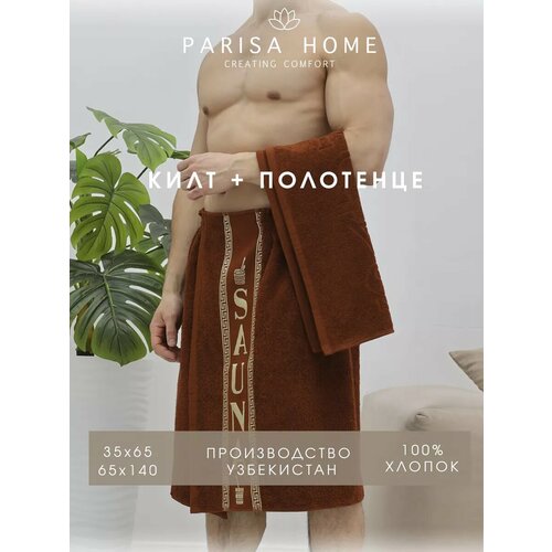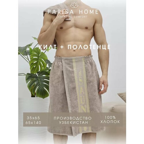 Килт мужской и полотенце для бани и сауны 100% хлопок Parisa Home