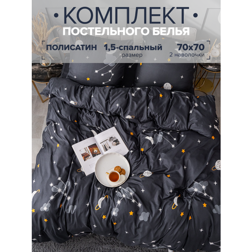 Постельное белье 1.5-спальный Павлина полисатин Звезды рис 9348, черный