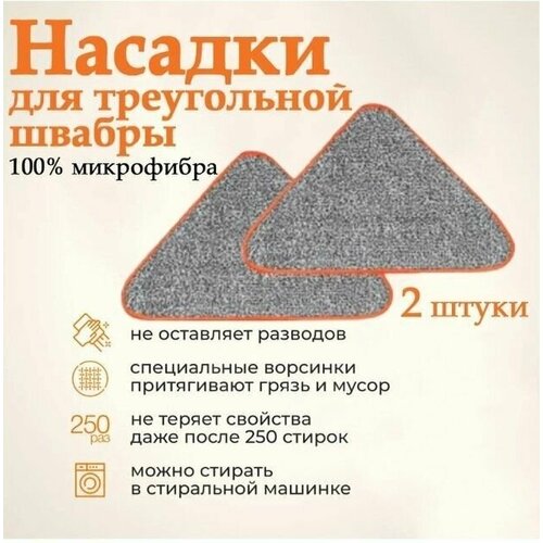 Сменная насадка на швабра треугольную, 2 шт, насадка из микрофибры