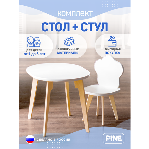 Детский стол и стул комплект Овальный + "Стандарт" PINE Kids