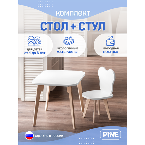 Детский стол и стул комплект Прямоугольный + "Стандарт" PINE Kids
