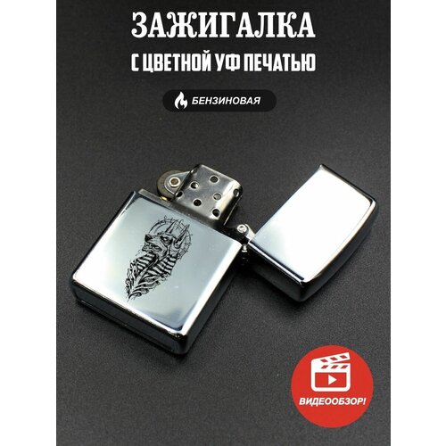 Зажигалка бензиновая, подарочная в деревянной шкатулке, с цветной печатью анубис