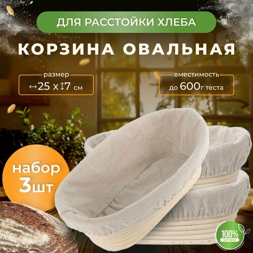 Корзина расстоечная PolyFood овальная из ротанга 25 см, набор 3 штуки