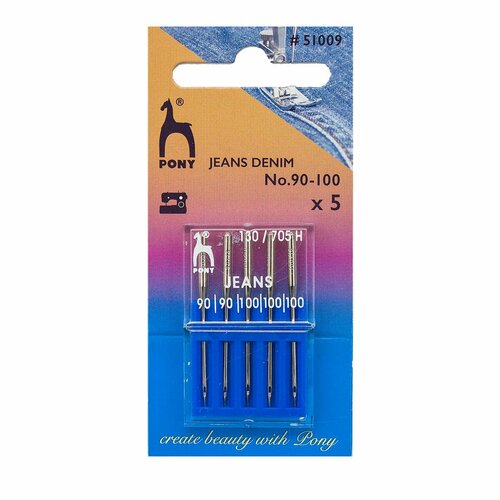 Иглы для швейных машин № 90-100 для джинсовой ткани, PONY, 51009, 5 шт