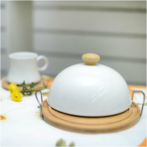 Масленка круглая на подставке из бука 20 см