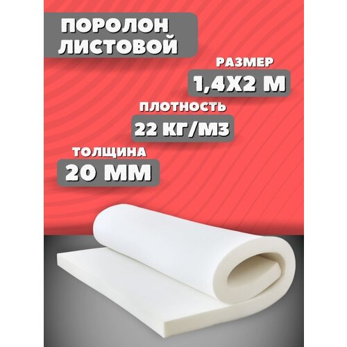Поролон мебельный листовой 200*140*2 см; Плотность 25кг/м3
