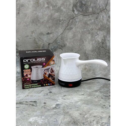 Электрическая турка "PROLISS", модель 219, линейка "Кофемания" - наслаждайтесь качественным кофе! Вместимость до 350ml. Чёрный/Белый.