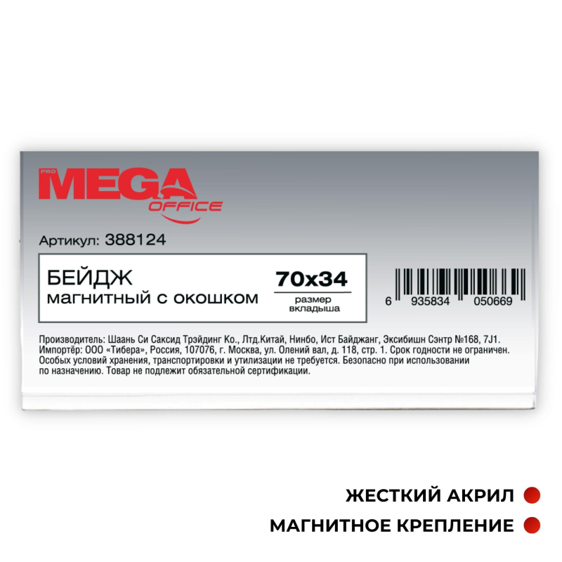 Бейдж магнитный Promega office с окошком 2шт 100060711605