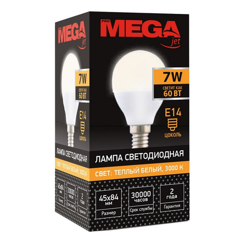 Светодиодная ProMega jet Лампа светодиодная Mega E14 7W 3000K шар