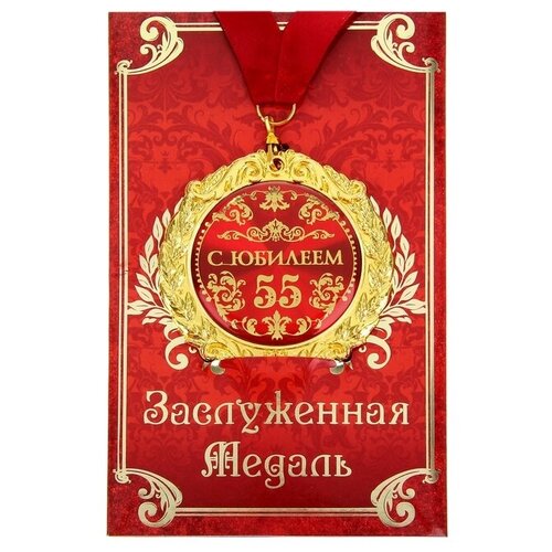 Медаль на открытке "С юбилеем 55 лет", диам. 7 см