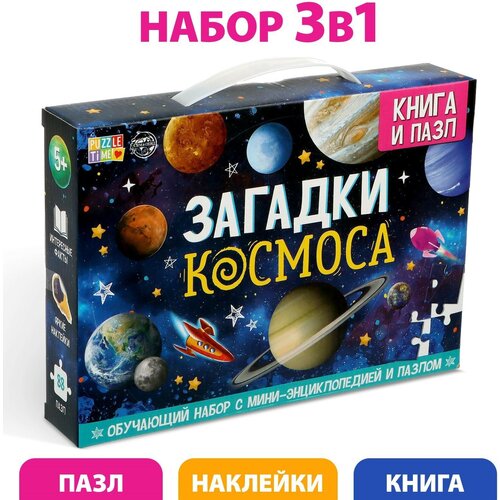 Набор обучающий "Загадки космоса": книга, наклейки и пазл, 88 деталей пазла, более 40 наклеек, Puzzle Time