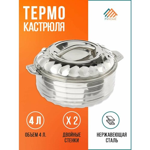Большая термокастрюля 4 л. Кастрюля термос для хранения супа, шашлыка. Посуда для еды с широким горлом из нержавейки.