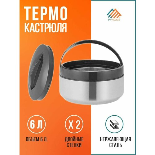 Большая термокастрюля 6 л. Кастрюля термос для хранения супа, шашлыка. Посуда для еды с широким горлом из нержавейки