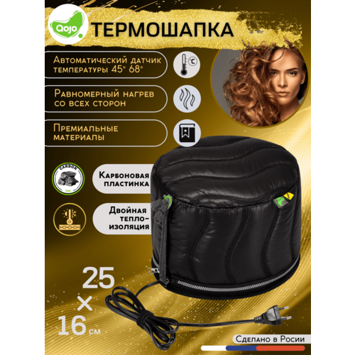 QOJO Термошапка для волос с угольной мембраной + двойная теплоизоляция Qojo SIRIUS CARBON (BLACK) 25X18 см.