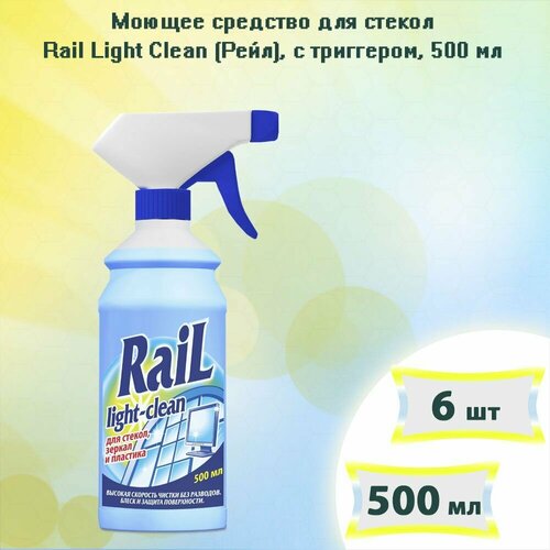 Моющее средство для стекол Rail Light Clean (Рейл), с триггером, 500мл х 6шт