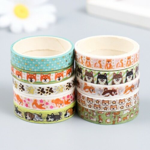 RAYDAY Клейкая лента бумага "Собачки" набор 10 шт шир. 0,8 см дл. 2 м 8,5х4х1 см