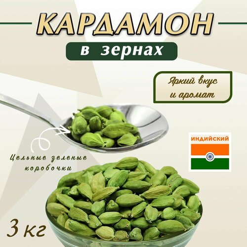 Кардамон Зеленый целые зерна Индия 3 кг, специя для кофе, чая, приправа для плова, мяса, рыбы, полезно для сердца