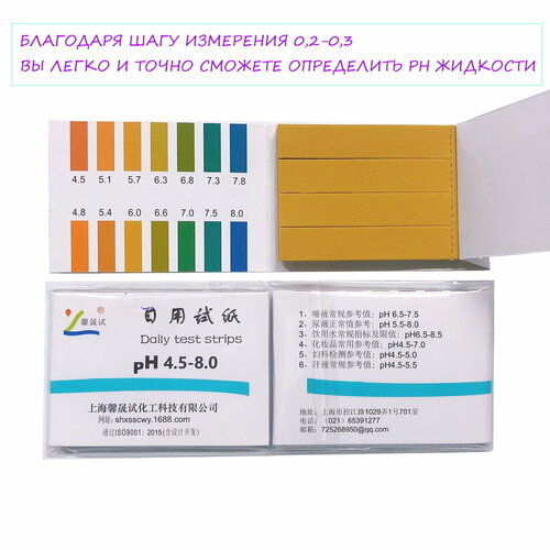 Индикаторная лакмусовая бумага pH 4,5-8, шаг 0.2-0,3; 80 тестов