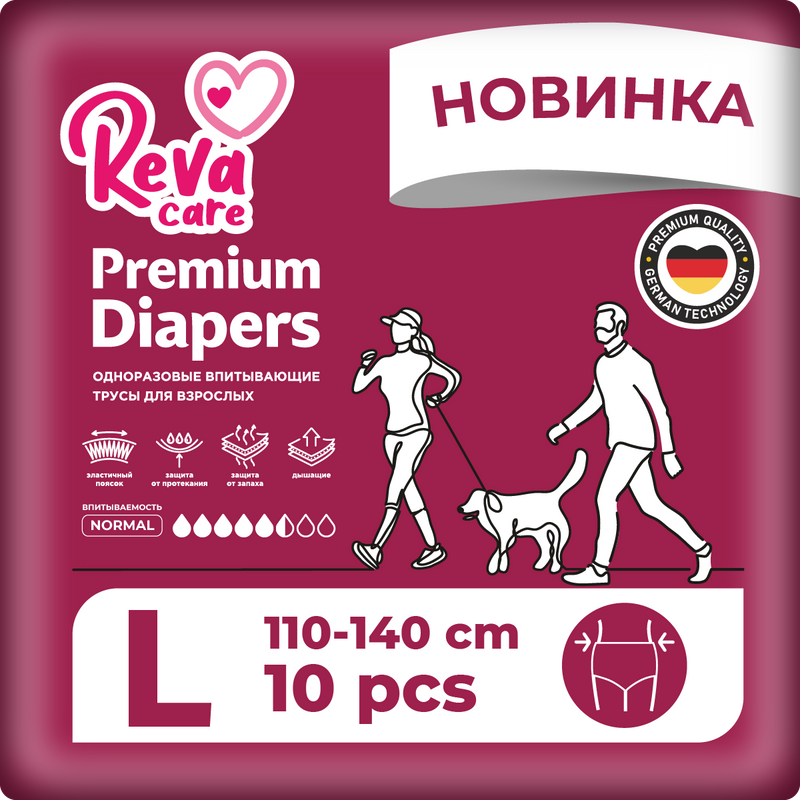 Подгузники- трусики для взрослых людей Reva Care р.L 110-140 см обхват талии 10 шт. t_l