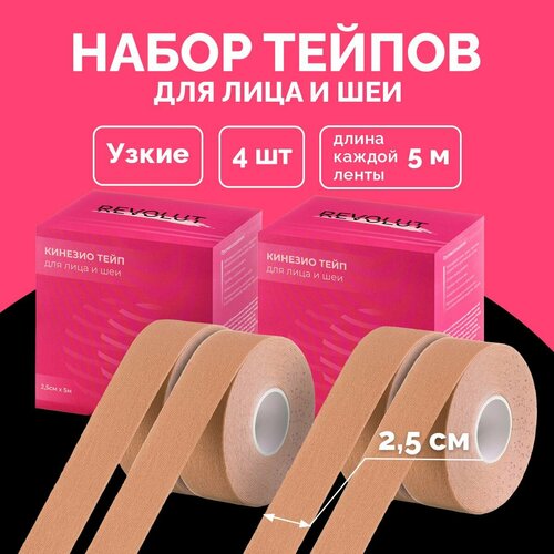 Тейпы для лица REVOLUT, тейпы для тела, тейп кинезио 2.5 см x 5 м, 4 шт