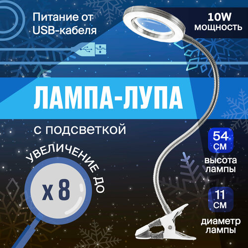 Лампа лупа с подсветкой настольная, REVOLUT, Светильник с лупой/ Лампа маникюрная, для рукоделия, чтения