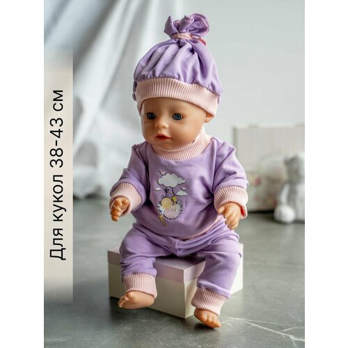 Одежда для куклы Беби Бон (Baby Born) 43см , Rich Line Home Decor, ИП-Х-777-1_Сиреневый-розовый-ангелочек-с-шапочкой