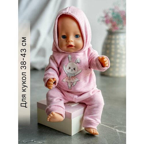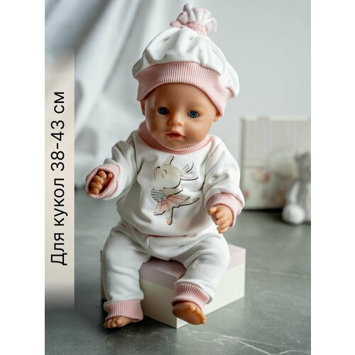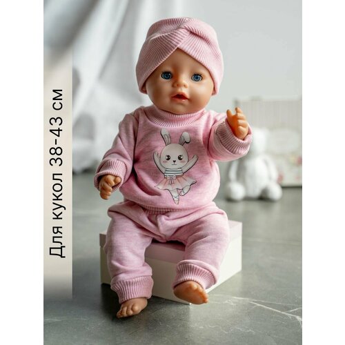 Одежда для куклы Беби Бон (Baby Born) 43см , Rich Line Home Decor, ИП-Х-777-1_Розовый-белый-зайка-с-шапочкой